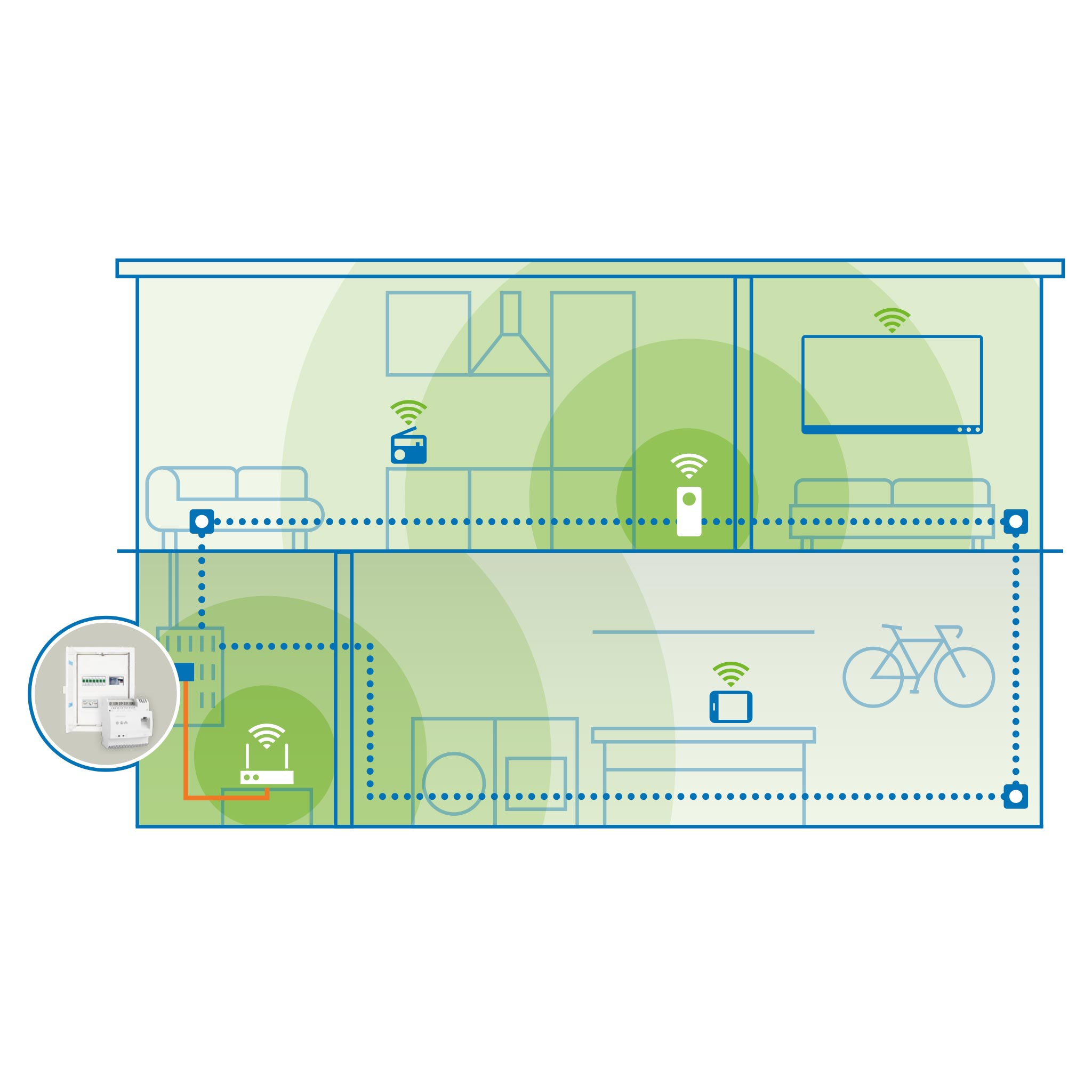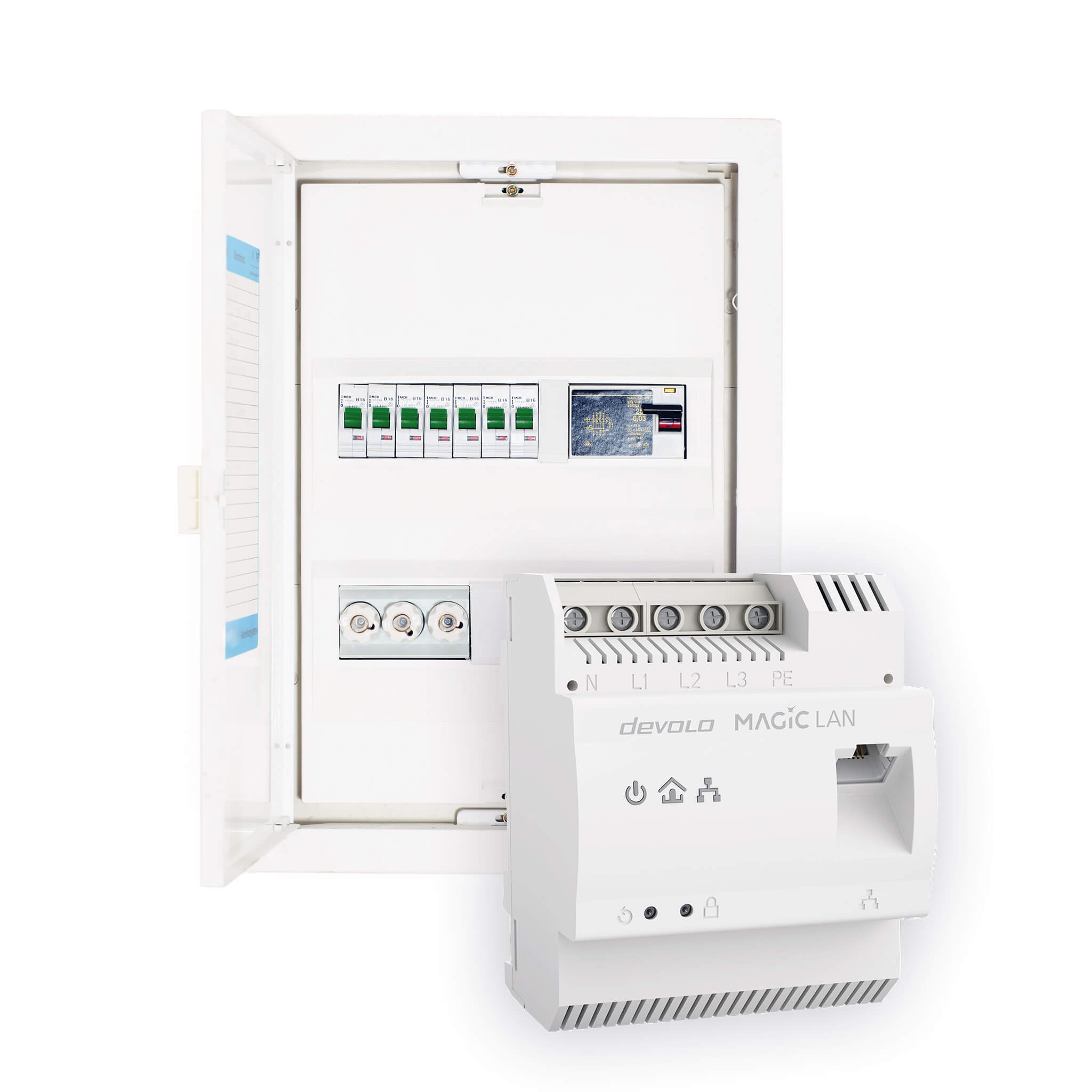 L’adattatore Magic 2 LAN DINrail ottimizza la trasmissione dei dati direttamente nel quadro elettrico o nella scatola dei fusibili, aumentando così in modo significativo le prestazioni della tua rete Powerline. Grazie all’accoppiamento automatico delle fasi, puoi incrementare la velocità di trasmissione dei dati in ogni presa della casa! Un’estensione ideale per la tua rete, ad esempio per l’automazione degli edifici, le applicazioni smart home o il tuo centro multimediale.